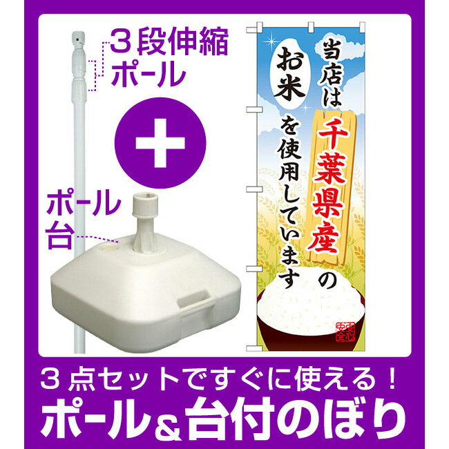 【3点セット】のぼりポール(竿)と立て台(16L)付ですぐに使えるご当地のぼり旗 千葉県産 内容:お米 (SNB-899)